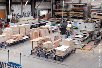 Once the lumber passes quality inspection, it is sent to the cutting station. Here the wood will be finely cut into various shapes and sizes to accommodate everything from dining room tables to ladder-end bunk beds.